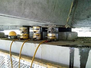 四川橋梁頂升加高須根據(jù)橋梁實(shí)際情況,對(duì)簡(jiǎn)支結(jié)構(gòu)體系橋梁,可單跨進(jìn)行頂升,也可一聯(lián)同時(shí)進(jìn)行頂升;對(duì)連續(xù)結(jié)構(gòu)體系橋梁,應(yīng)按一聯(lián)同時(shí)頂升,并保證頂升同步。施工時(shí)應(yīng)根據(jù)頂升計(jì)算的支撐反力,選擇千斤頂?shù)捻斏龂嵨?,保證千斤頂頂升噸位需大于2倍的頂升重量。